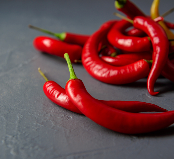 Red chillies are ripe chilli peppers, known for their hot and pungent flavor. They are a key spice in many cuisines.